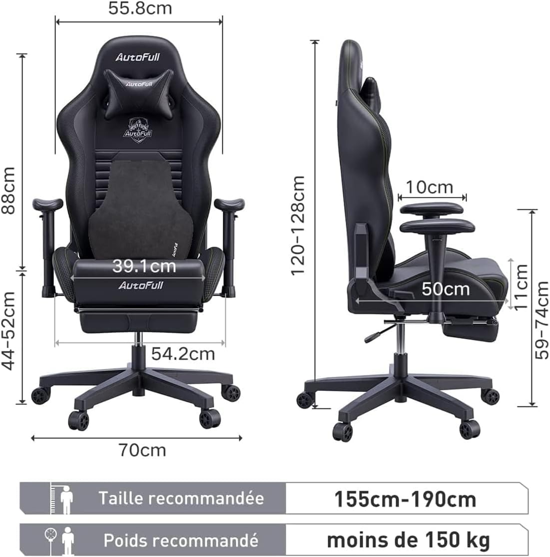 Le fauteuil gamer AutoFull se distingue par plusieurs caractéristiques clés qui répondent aux besoins des joueurs et des professionnels :